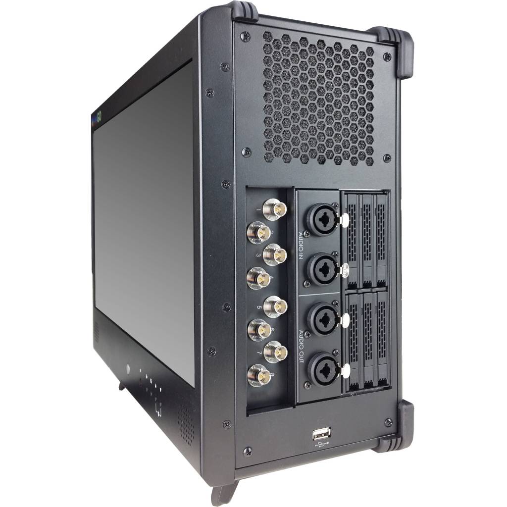Een ingebouwd beeldscherm zorgt voor een compacte, draagbare opstelling op locatie met de mogelijkheid om een of twee extra LCD-schermen toe te voegen via DVI, HDMI of DisplayPort voor Multiviewer en andere toepassingen.