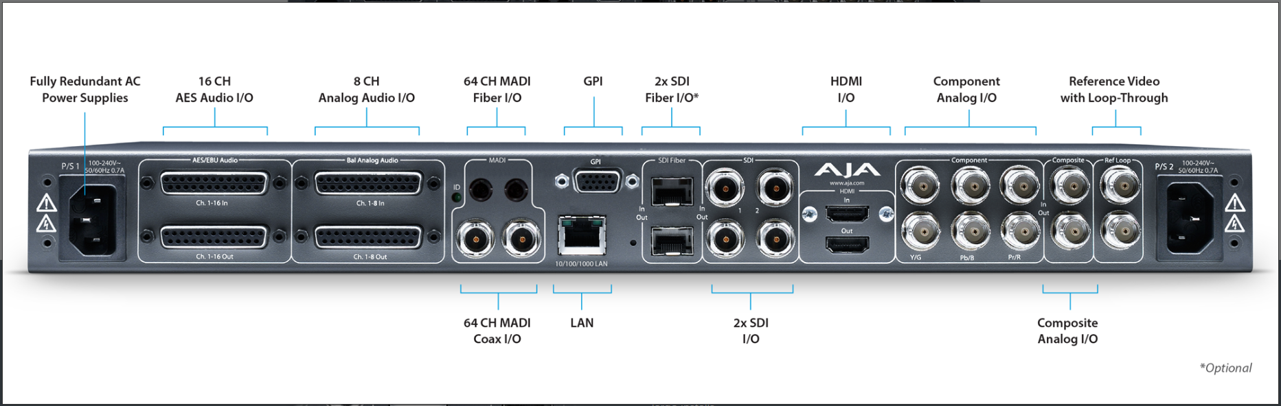 De FS1-X is uitgerust met uitgebreide I/O voor het converteren tussen de meest uiteenlopende analoge en digitale signalen. Perfect voor gebruik in alle broadcast- en postproductieomgevingen, met 3G-SDI in- en uitgangen, HDMI, uitgebreide meerkanaals audioaansluitingen die de nieuwste standaarden ondersteunen en I/O voor analoge videoapparatuur, inclusief HD- en SD-component.