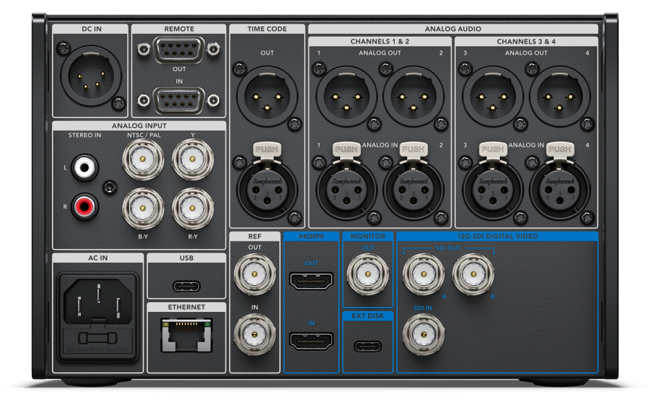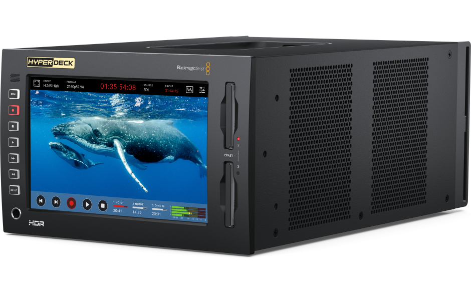 HyperDeck Extreme heeft een innovatieve gebruikersinterface met aanraakscherm met bedieningselementen voor het deck en een groot scherm om uw opnames te bekijken, HyperDeck Extreme bevat ook 2 mediaslots, 12G-SDI, analoge aansluitingen voor archivering, USB-C externe schijfopname, plus een luidspreker op het voorpaneel en een hoofdtelefoonaansluiting, Er is ook een optionele cache die verloren frames elimineert als uw media vol raken of te traag zijn, Zowel AC- als DC-stroomaansluitingen zijn ook inbegrepen voor gebruik in de studio of op locatie,
