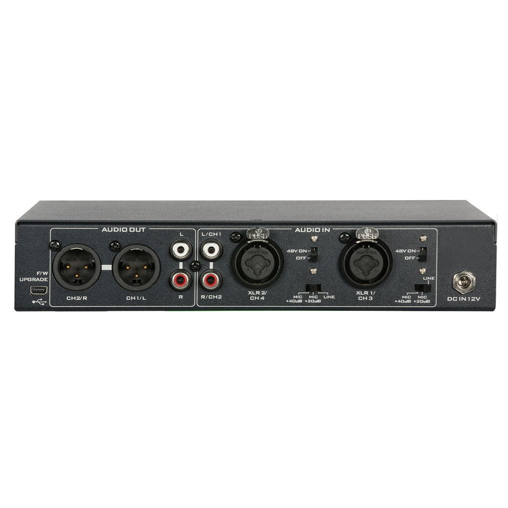 When unbalanced and balanced audio conversion is required, the AD-300's audio conversion function will ensure that the sound output matches the desired format. Switchable for Microphone input or Audio Line input and Supports XLR mic in and +48V phantom power.