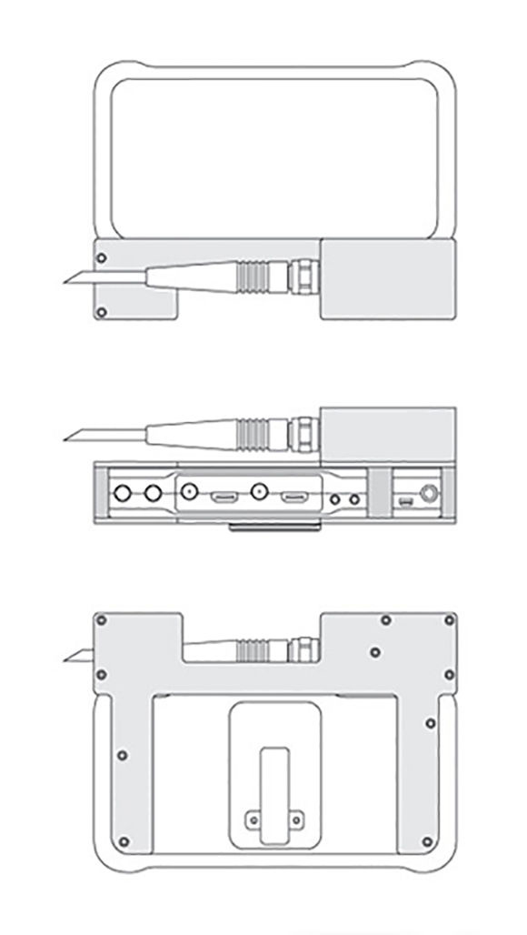 - Fiber optic technology conveying copper for powering the camera, converter and charging its battery.