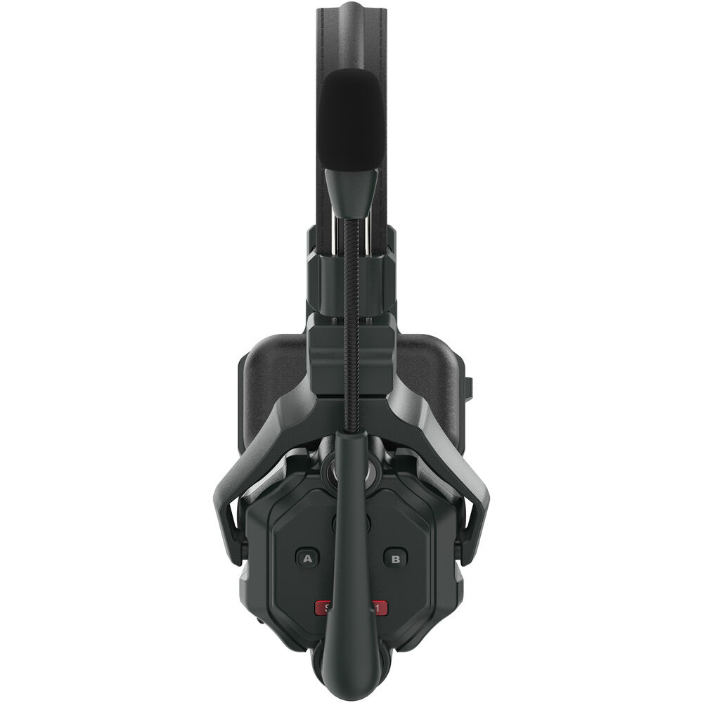 De headsets worden automatisch gekoppeld en de duidelijk voelbare volumeknoppen zorgen voor snelle aanpassingen, waardoor het systeem eenvoudig te bedienen is. De microfoonarm op elke headset kan 360° worden gedraaid, waardoor hij naar links of naar rechts kan worden georiënteerd. Door de arm omhoog of omlaag te draaien, wordt de microfoon gedempt wanneer deze niet in gebruik is. Een LED geeft aan dat het systeem werkt en waarschuwt u wanneer de batterij bijna leeg is.