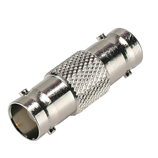 Met deze adapter kun je twee BNC kabels aan elkaar koppelen.