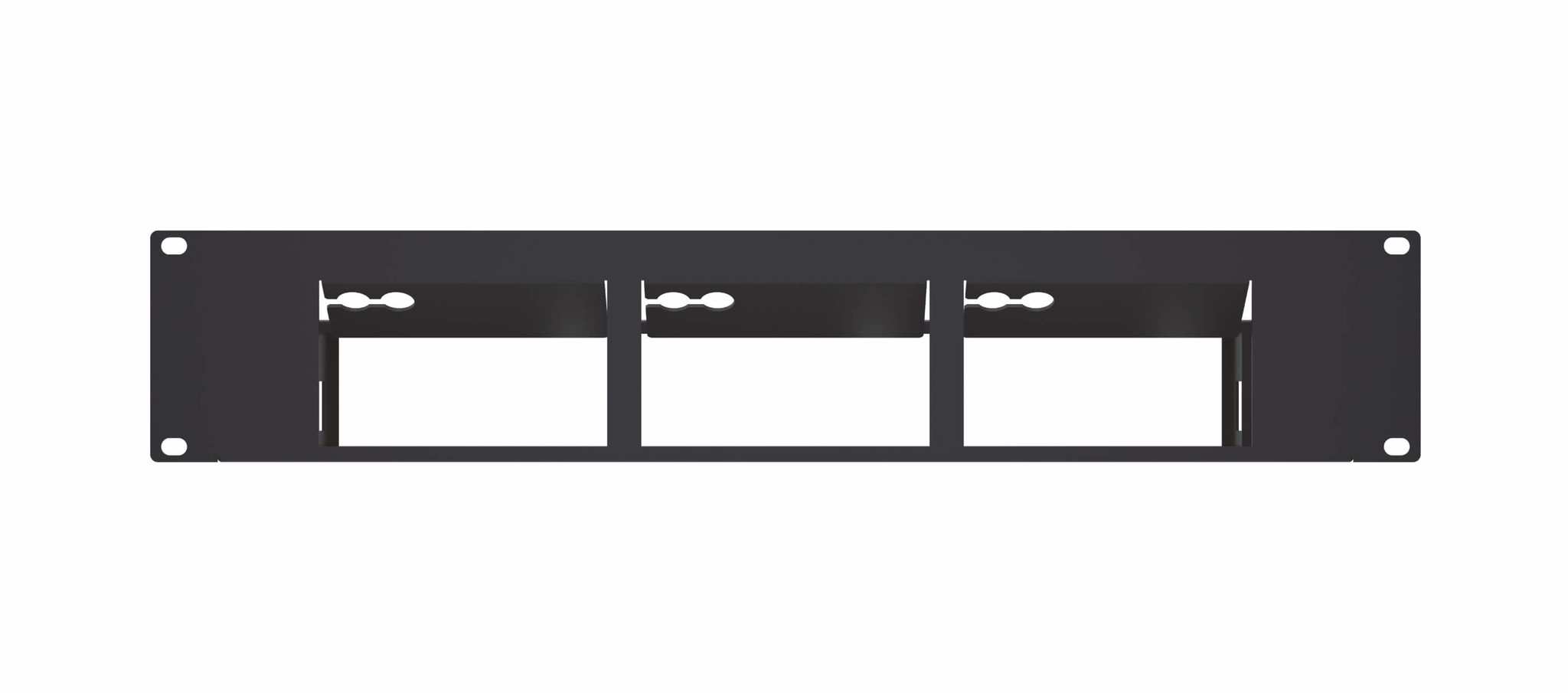 19−inch rack adapter for mounting up to 3 VIA Connect PRO units and their power supplies in a 2U rack space.
