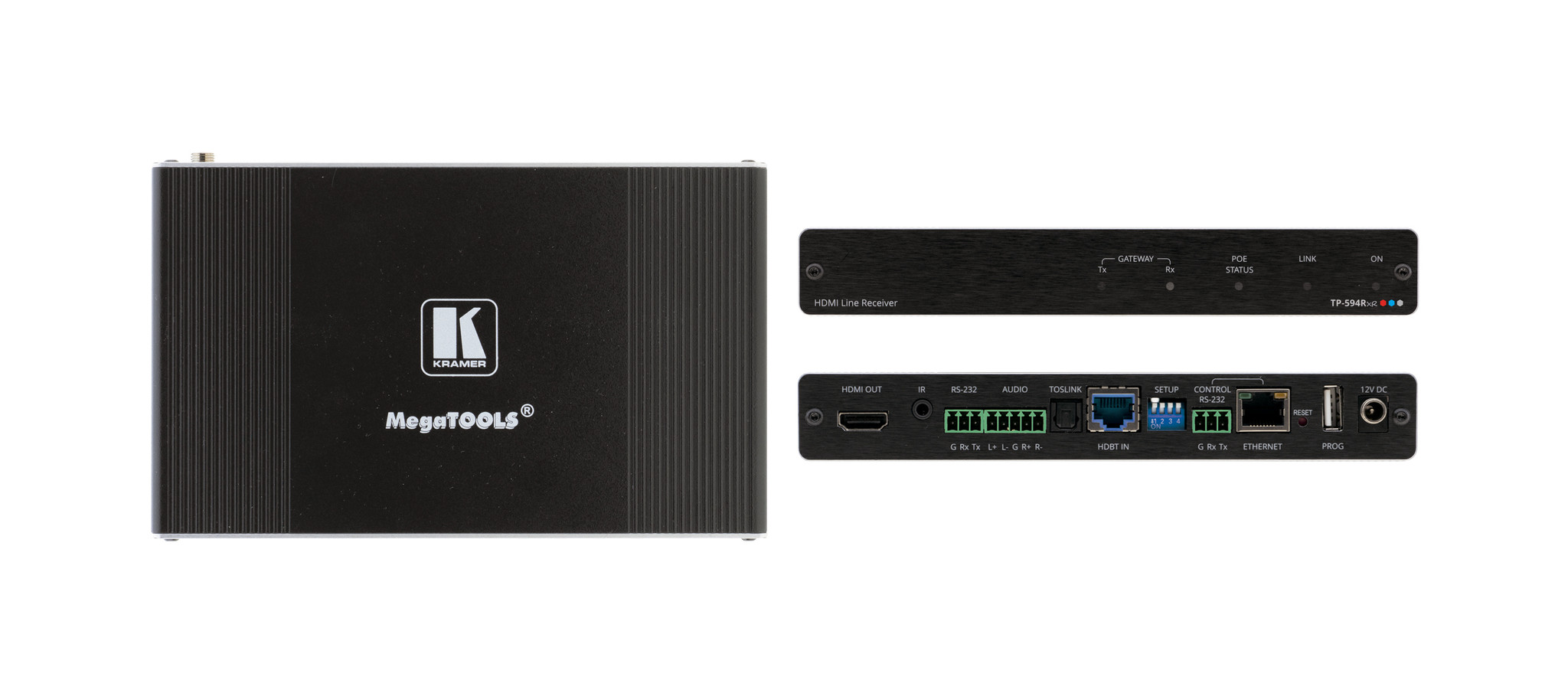 KRAMER - TP-594Rxr 4K HDR HDMI Receiver with Ethernet, RS–232, IR, ARC & Stereo Audio Embedding/De–embedding over PoE Extended–Reach HDBaseT 2.0