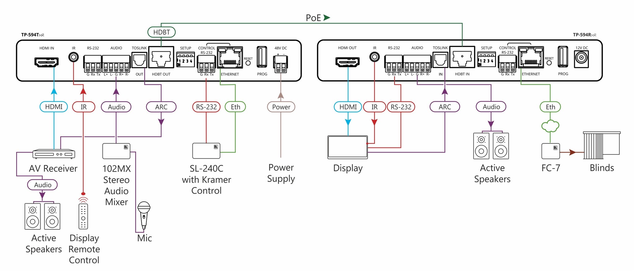 TerugHomeKRAMER - TP-594Rxr 4K HDR HDMI Receiver with Ethernet, RS–232, IR, ARC & Stereo Audio Embedding/De–embedding over PoE Extended–Reach HDBaseT 2.0