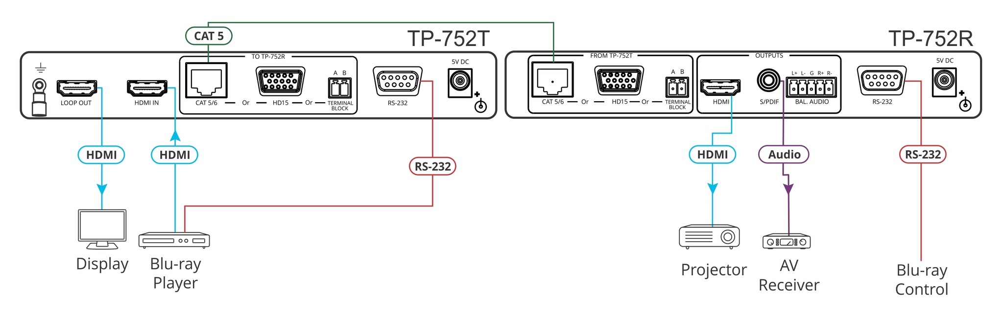 TerugHomeConverter & DistributieKramer ElectronicsScan Converters - ScalersKRAMER - TP-752R HDMI Ultra–reach Receiver with RS–232 & Loop, over Any 2–wire Cable (576)