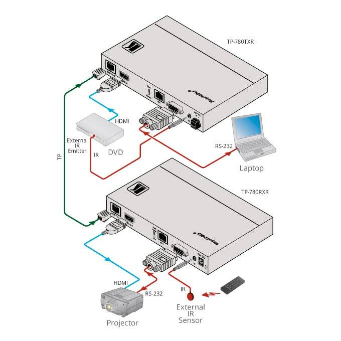 - High Performance Standard Extender — Professional HDBaseT extender for providing extended–reach signals over twisted–pair copper infrastructures. TP–780Rxr is a standard extender that can be connected to any market–available HDBaseT–compliant extension product. For optimum extension reach and performance, use recommended Kramer cables.