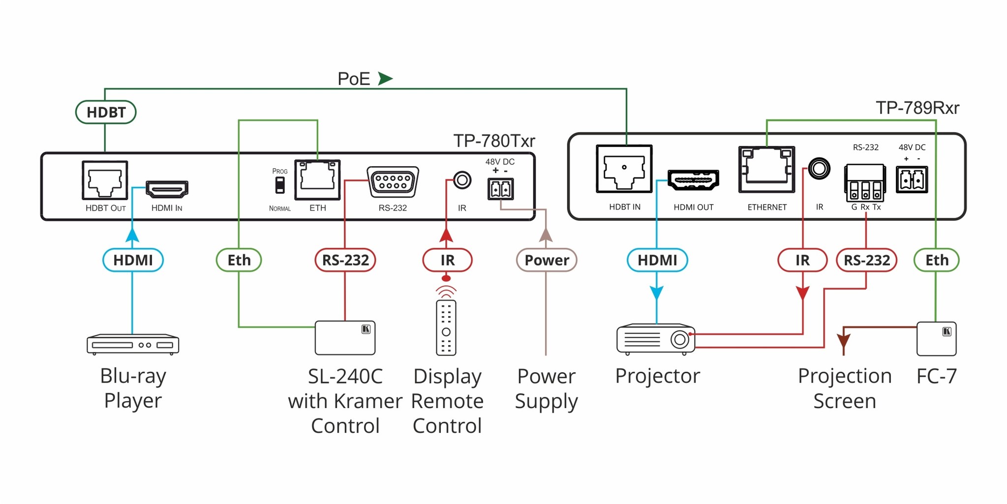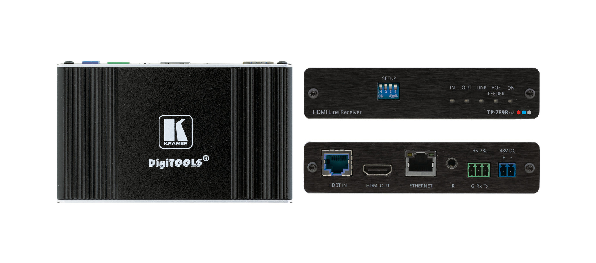 - High Performance Standard Extender — Professional HDBaseT extender for providing extended–reach signals and powering over twisted–pair copper infrastructures. TP–789Rxr is a standard extender that can be connected to any market–available HDBaseT–compliant extension product. For optimum extension reach and performance, use recommended Kramer cables.