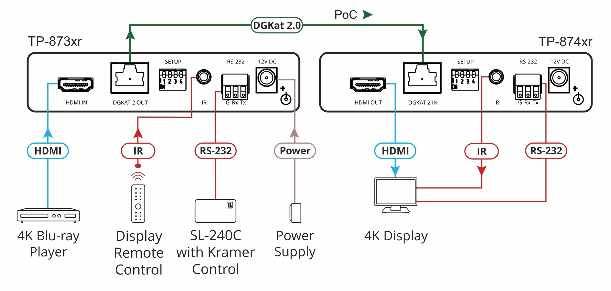 KRAMER - TP-874xr 4K HDR HDMI PoC Receiver with RS–232 & IR over Long–Reach DGKat 2.0