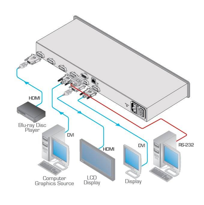 - Kramer Equalization & re–Klocking™ Technology — Rebuilds the digital signal to travel longer distances.