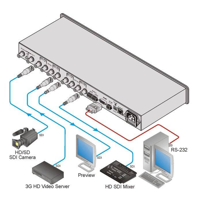 - Kramer Equalization & re–Klocking™ Technology — Rebuilds the digital signal to travel longer distances.