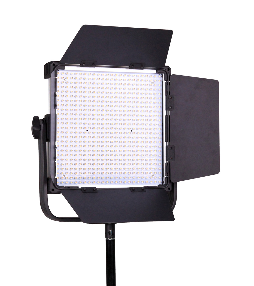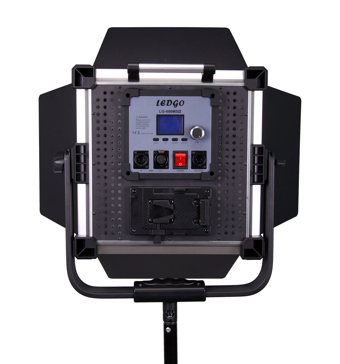 The Broadcast Series LED Panel 600 with DMX & WiFi from Ledgo comes with Broadcast series LED panel 600, a set of removable barndoors, a built-in Sony V-lock battery plate, a yoke with 5/8" light stand mount, three filter sets, and a nylon carry case.