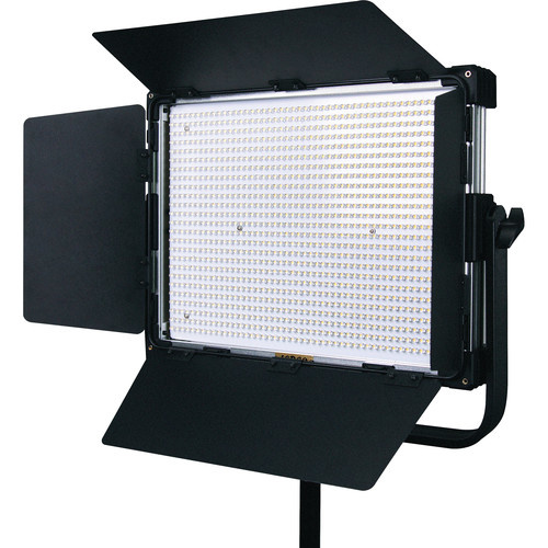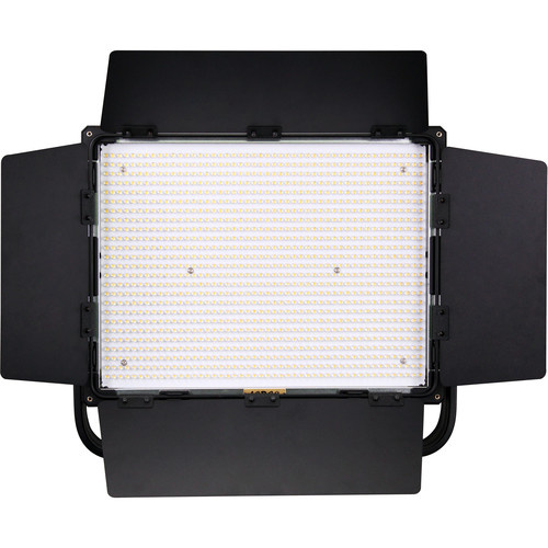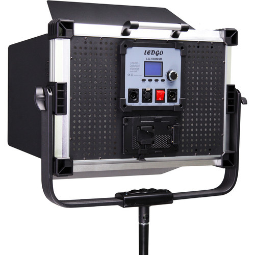 The Broadcast Series LED Panel 1200 with DMX & WiFi from Ledgo comes with Broadcast series LED panel 1200, a set of removable barndoors, a built-in Sony V-lock battery plate, a yoke with 5/8" light stand mount, three filter sets, and a nylon carry case.