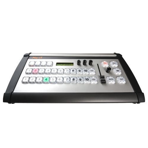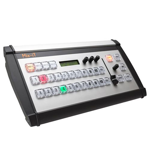 Mix-iT is a compact, versatile control panel for all Blackmagic Design ATEM switchers. It features 31 illuminated broadcast quality buttons, a fader and 4 rotary buttons, to effortlessly control these great switchers.
