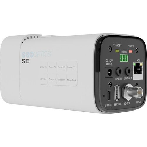 De Studio SE is een handige oplossing voor contentcreatie en livestreaming die gebruikmaakt van een 1/2,8" CMOS-sensor voor video-opnames tot 1080p60. De camera heeft een 12x optische zoom, een beeldhoek van 72,5 tot 6,9°, een tally-lampje aan de voorkant, een ingebouwde microfoon en lijningangen en -uitgangen.