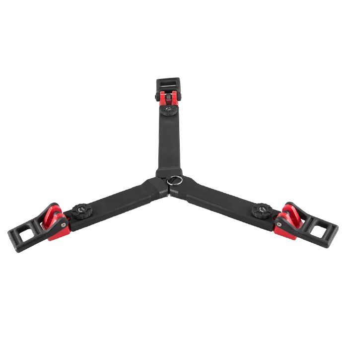 The heavy duty Sachtler Mini Spreader 150 is made of rubber. It's ideal for shooting on level ground, or flat surfaces. It's rapid set-up and pull down becomes natural as legs are all in-set and ready to go relative to each other allowing extension of the tripod legs without detaching the spreader as the arms of the spreader are telescopic.