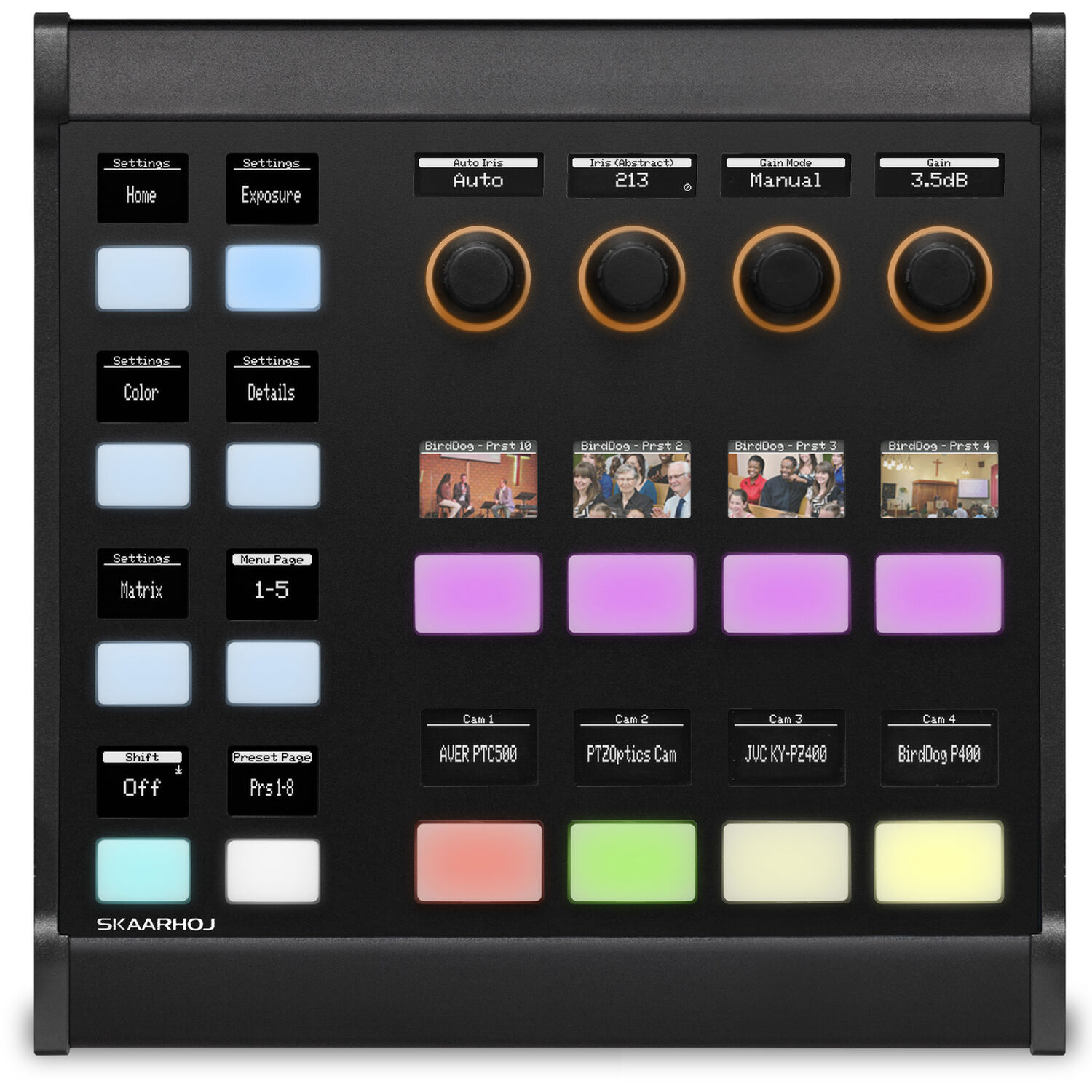 Elke knop en encoder op de Frame Shot Plus kan worden aangepast aan jouw exacte behoeften, of het nu gaat om het wisselen van camera's, het activeren van macro's, het selecteren van camera's, het dimmen van camera's of het beheren van andere apparaten in jouw opstelling. Het integreert moeiteloos met het bredere SKAARHOJ-ecosysteem en biedt naadloze compatibiliteit met andere bedieningspanelen en apparaten. Voor producties die extra controle vereisen, is Frame Shot Pro een perfecte uitbreidingsmodule en een natuurlijke aanvulling op panelen zoals PTZ View, PTZ Pro, PTZ Extreme en schakelcontrollers zoals een Air Fly Pro.