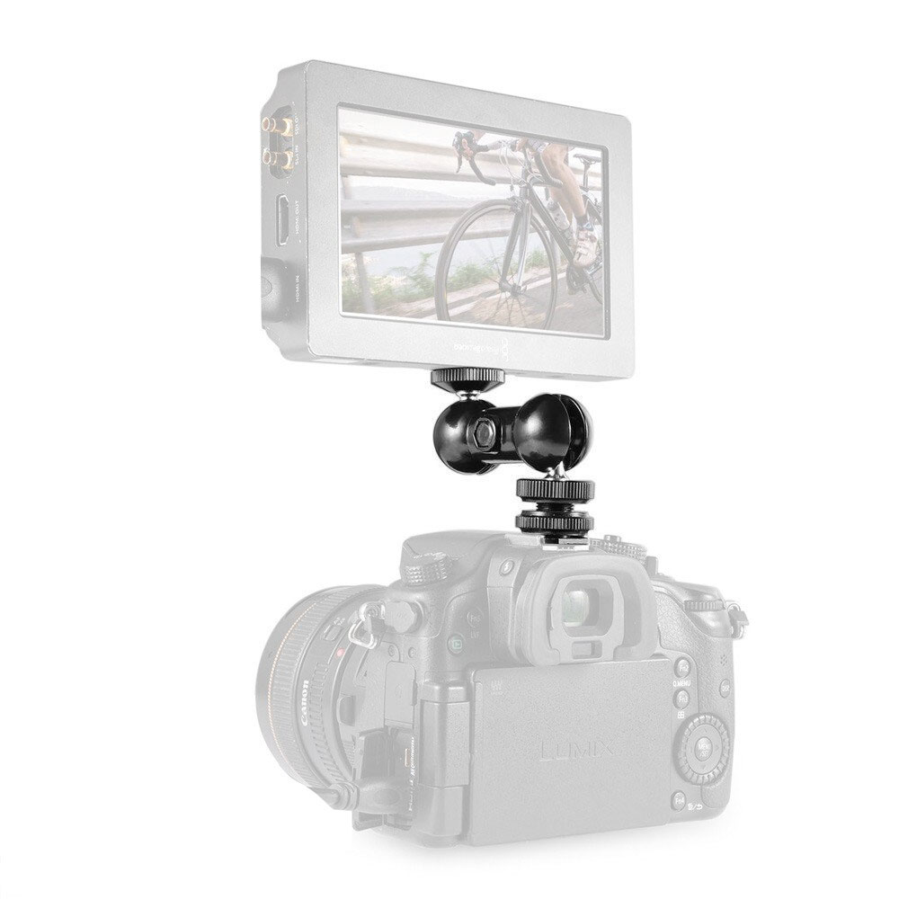 Met een 1/4"-20 schroefdraad aan het ene uiteinde en een cold shoe-adapter aan het andere, is de Double Ball Head compatibel met een breed scala aan cameracomponenten. Beide balkoppen worden bevestigd met behulp van de enkele, grote draaiknop.