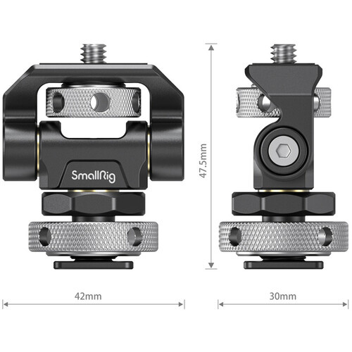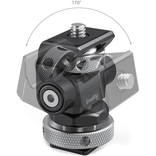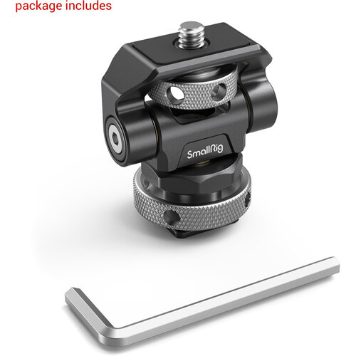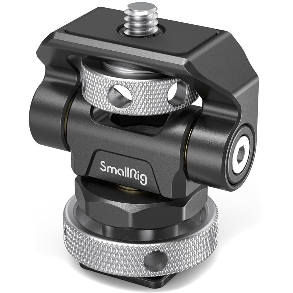 De SmallRig 2905 Swivel & Tilt Verstelbare Monitor Mount met Cold Shoe Mount is ontworpen om je monitor op de bovenkant van de camera of een ander montagesysteem te bevestigen via een cold shoe adapter. Hij is voorzien van 1/4"-20 schroef aan de bovenkant voor monitor, licht of microfoon. De houder kan 360° zijwaarts draaien en 170° kantelen met een vrije stop in elke positie. De vastheid van elke as is instelbaar via de inbussleutel. De robuuste houder is CNC-gefreesd aluminium en kan 5" en 7" monitoren tot 1,5 kg dragen. De swivel & tilt mount heeft een beschermende rubberen bekleding aan de bovenzijde en wordt geleverd met een inbussleutel voor het vastdraaien van de bevestigingen voor nog meer veiligheid.