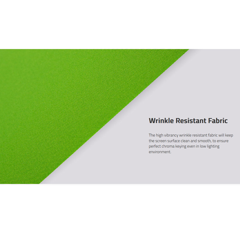 Het kreukbestendige materiaal houdt het schermoppervlak glad om een optimale chromakey te garanderen.