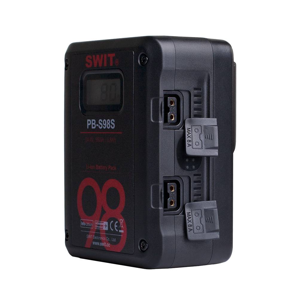 The SWIT PB-S98S 14.4V 98Wh Dual D-Tap Heavy-Duty Digital Battery, featuring a V-mount, has a short, compact design and provides up to 100W/8A continuous output. While it's suitable for most cameras and devices and it can power an ENG camera for approximately 3 hours, its small size also makes it ideal for drones and other mobile applications. In addition to this, the PB-S98S offers two D-Tap outputs for powering accessories and a USB port for charging mobile devices.