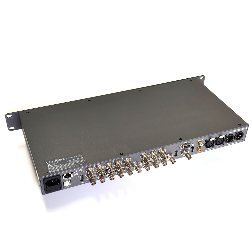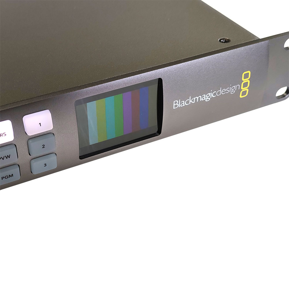 De switcher is 1 RU hoog en heeft ingebouwde rackmount-oren voor montage in een productiekast of een postproductiefaciliteit,