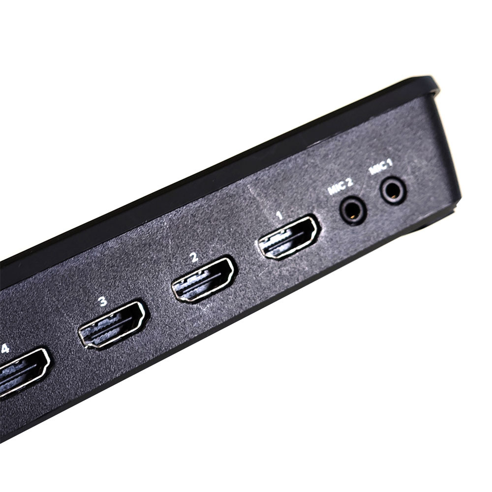 1 x 10 Views including left right configurable Program/Preview, 4 HDMI inputs, Media Player, Streaming Status, Recording Status and Audio Meters,