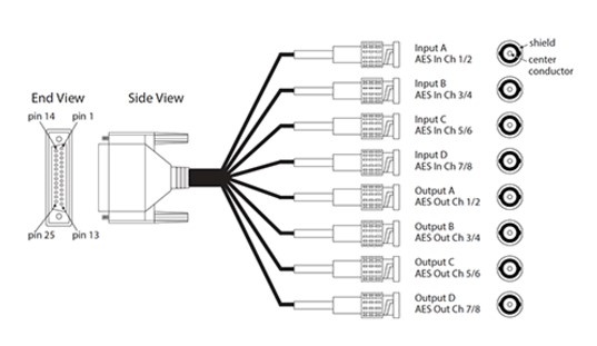 - 25-Pin Sub-D Male to XLR Breakout Cable