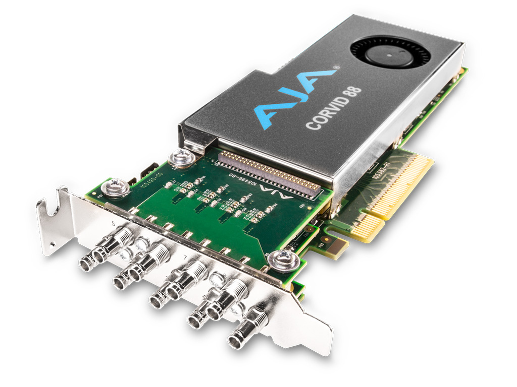 Corvid 88 gives AJA Developer Partner applications access to up to eight simultaneous input and output streams on a single PCIe card, making it perfect for ingest and playout servers and channel-in-a-box systems.