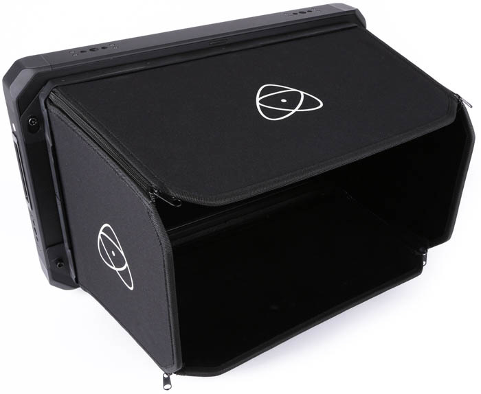 In difficult lighting conditions, the deep Atomos Sunhood for Sumo 19-inch monitor blocks incident (sun) light. The hood is attached via an integrated mounting bracket and can be folded flat.