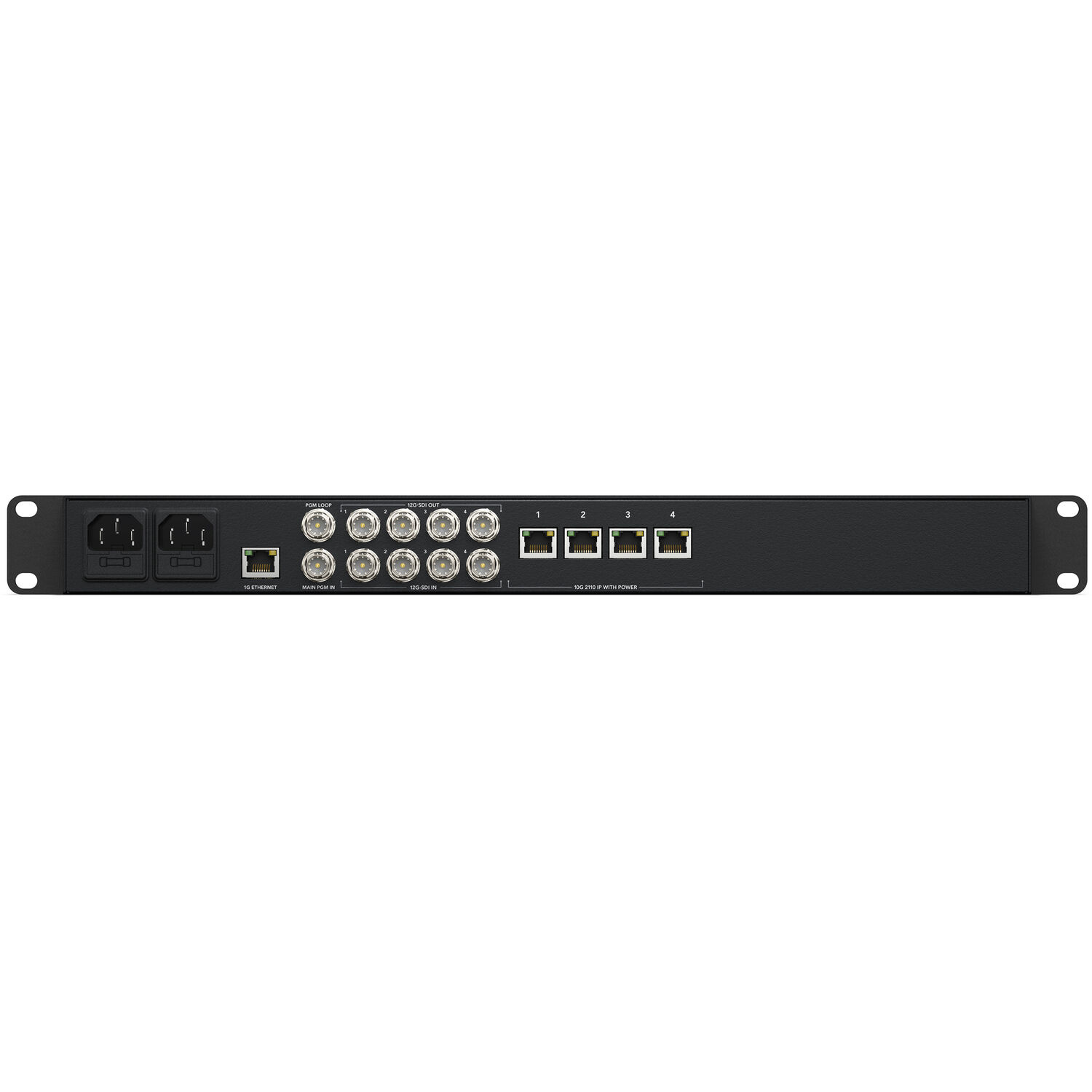 The Blackmagic 2110 IP Converter 4x12G PWR allows you to add SMPTE-2110 IP video to 12G-SDI broadcast equipment, It has 4 independent bi-directional 12G-SDI to SMPTE-2110 IP video converters using RJ-45 10G Ethernet connections that can also provide power, The 1RU design includes an LCD control panel and supports HD and Ultra HD standards up to 2160p60,
