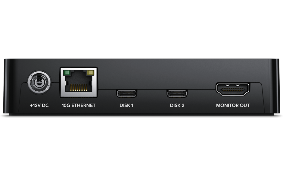 Blackmagic Cloud Pod has an extremely small and slim design as it has no internal storage, It is also very quiet and very portable, It features two USB-C ports, so it can host two separate USB drives on their network at the same time, Thanks to the 10G Ethernet port, you get extremely high performance, There is also an HDMI monitor output so you can view a live graphical representation of the storage on a TV or monitor,