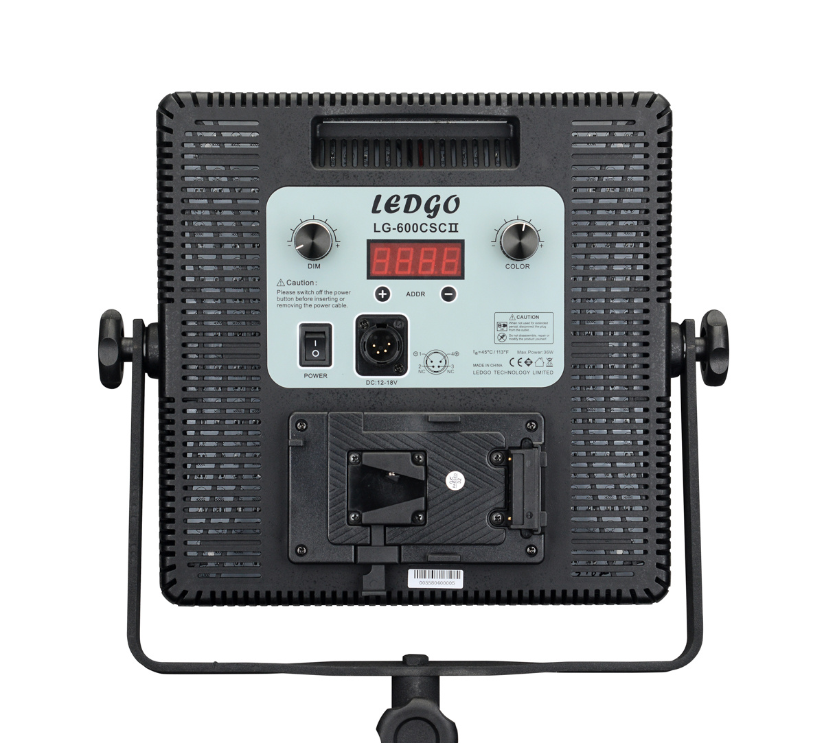 The Value Series LED Bi-Color Panel 600 from Ledgo is a 36W square light panel with the equivalent light output of a 688W tungsten light source. This bi-color panel allows you to fine tune the color of your light anywhere from 3,200 to 5,600K while generating 2,668 lumens and producing 4,720 lux at 3.28'. Customize your light with the included soft light diffusion filters or a 6,500K blue filter. Every Ledgo LED panel comes with an AC power adaptor and a metal yoke with a 5/8" receiver.