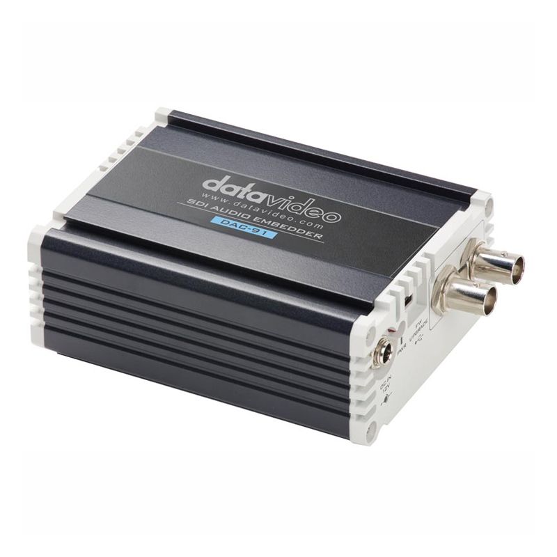 The DAC-91 is an embedded audio box with useful functions that allow users to embed 2 channels of analogue audio into SDI video signal.