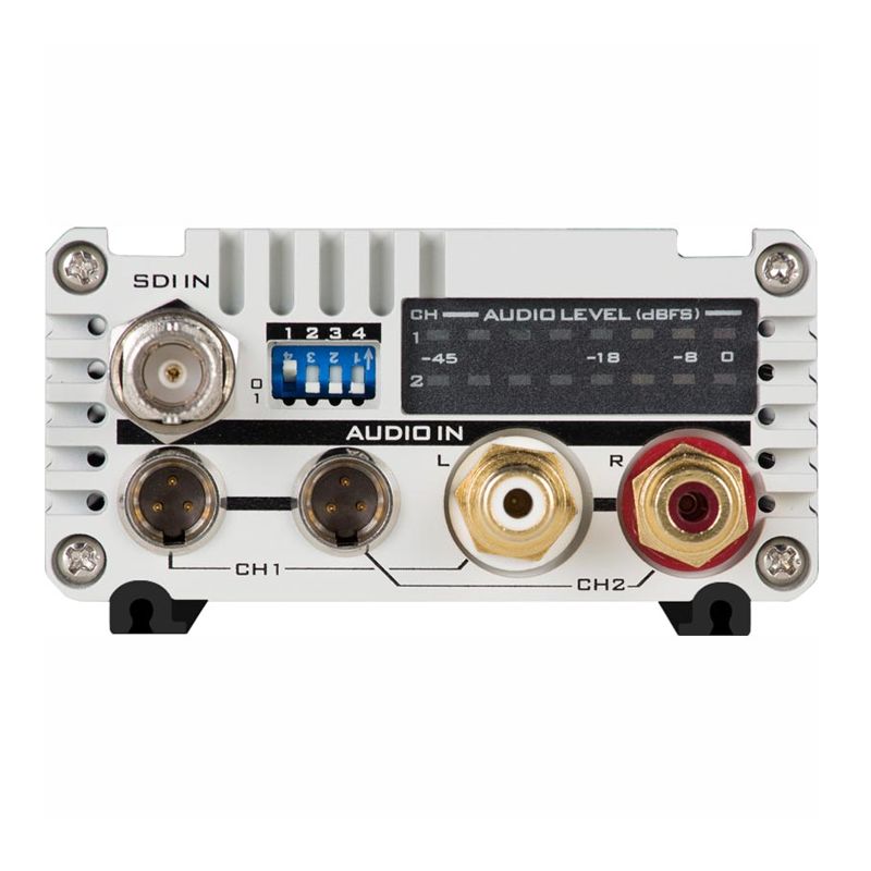 It features 3G/HD/SD-SDI to support up to 1080p/60 video format, automatically detecting and switching between the different formats and provides mini XLR and RCA audio connectors for inputting analogue audio.