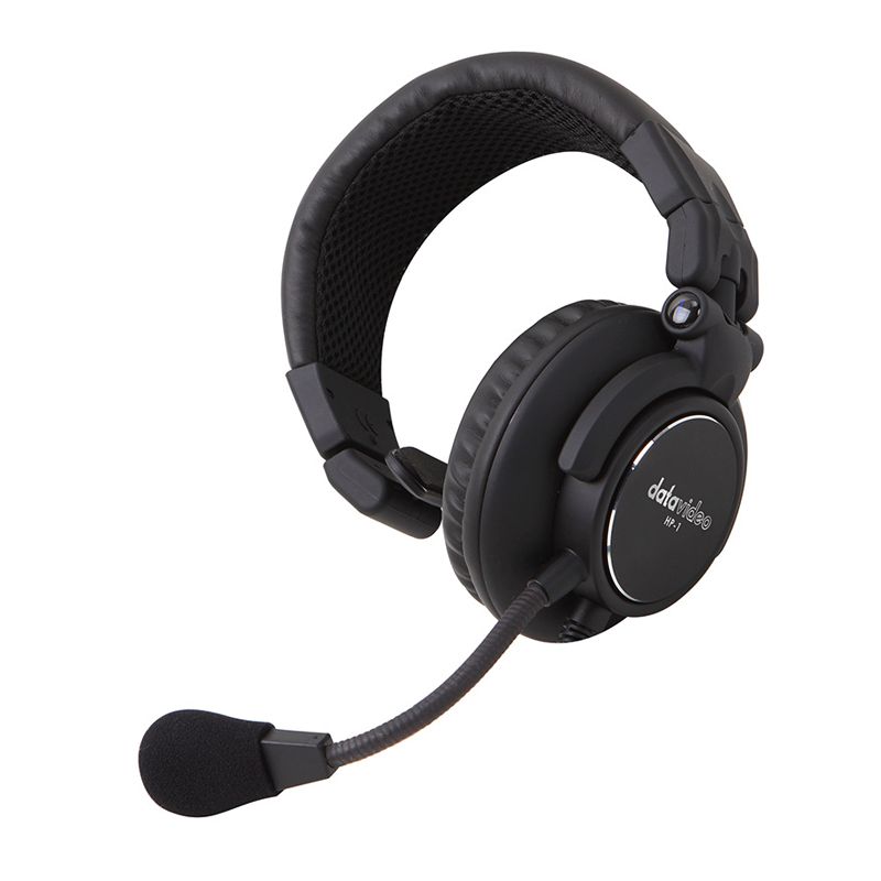 The Datavideo HP1 Single-Ear Headset is compatible with Datavideo ITC Intercom Systems. It features a closed-back design to reduce outside noise, a soft circumaural earpad and a noise-cancelling microphone. The headphone speaker resists clipping during loud monitoring.