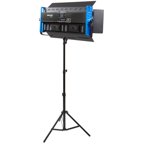 The panel has a high CRI/TLCI rating of 96/97 indicating superior performance in color reproduction. It is dimmable from 0 to 100% and you can make adjustments locally on the fixture or remotely from a DMX console. A free app allows you to control the LED3000 wirelessly with a smartphone or at distances up to 100' using a master/slave setup. The 29.5 x 15.4 x 3" panel is ready for worldwide use thanks to its 100-240 VAC power supply, but it will also run on two V-mount batteries when AC current is unavailable.