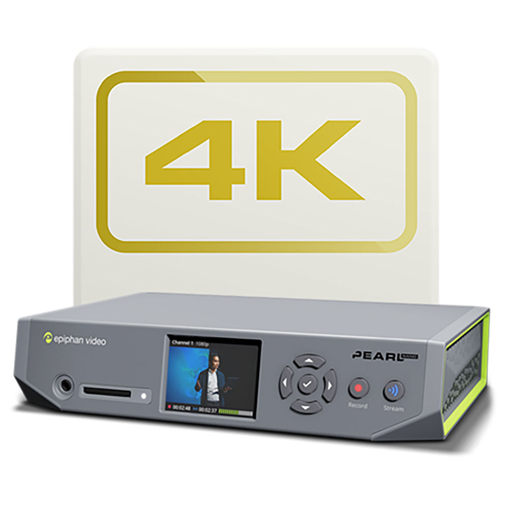 Enable 4K input and output to your Pearl Nano streamer/recorder unit with this Epiphan Pearl Nano 4K Add-on. This add-on license enables 4K input via HDMI and SDI and provides 4K pass-through via HDMI on the Pearl Nano. It enables 4K video with H.265/HEVC encoding for high-quality streaming and recording with a low-latency codec.