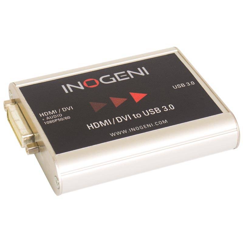 The INOGENI HDMI/DVI-D to USB 3.0 Converter is the most easy and reliable tool to capture uncompressed video with audio from your camera's HDMI/DVI-D output for your PC for recording, video conferencing and live streaming applications. No driver installation is necessary and will work on all motherboards and USB 3.0 chipsets. It features a single HDMI/DVI-D input and USB 3.0 output, supports SD / HDTV video formats up to 1080p60 and most computer graphic formats.