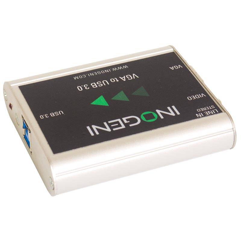 The INOGENI VGA/CVBS to USB 3.0 Converter is the most easy and reliable tool to capture uncompressed video with audio from your VGA or CVBS output for your PC for recording, editing, video conferencing and streaming applications. No driver installation is necessary and will work on all motherboards and USB 3.0 chipsets.