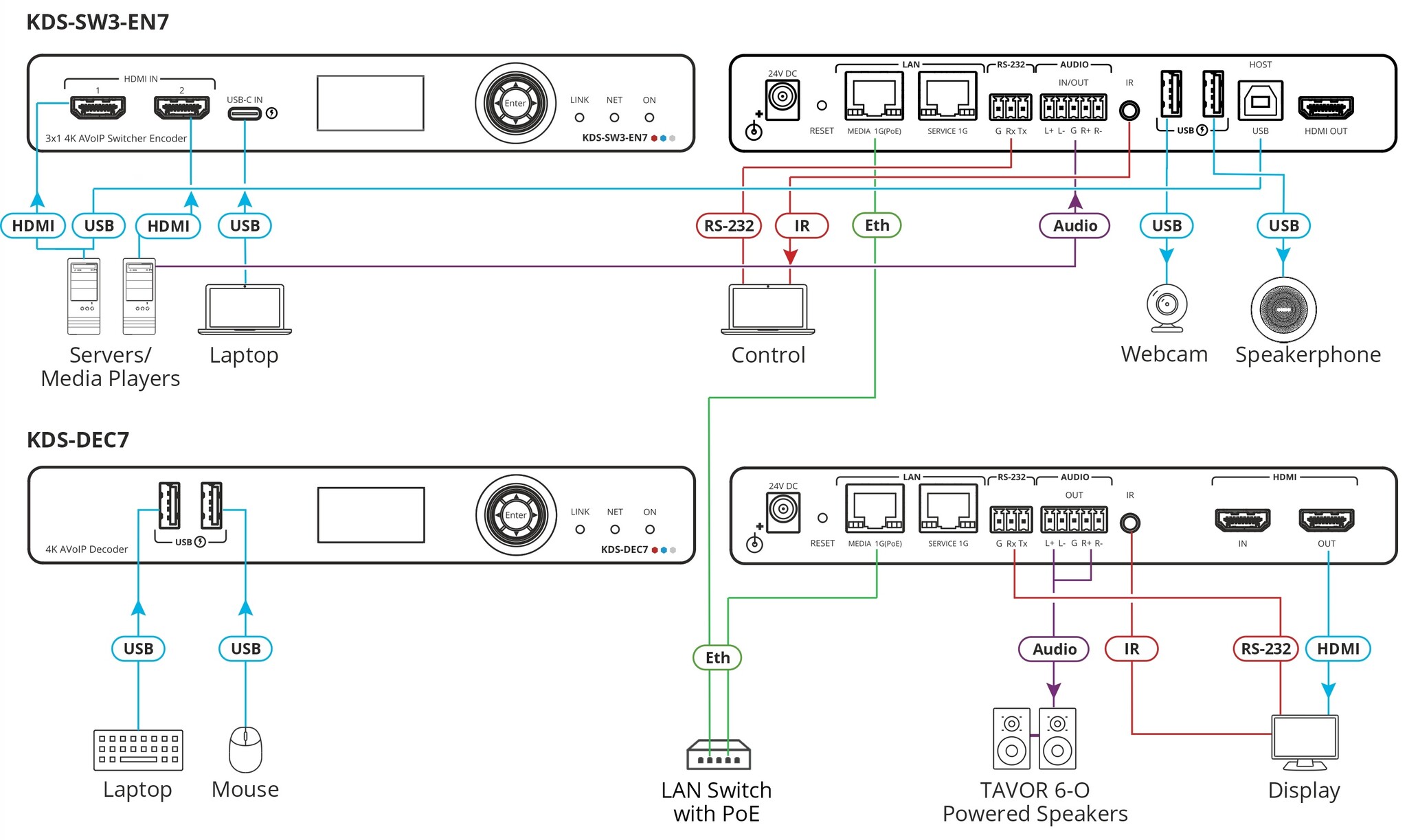 - Plug–and–play with Netgear M4250 AVoIP switches, Kramer Control, and KDS–USB2.