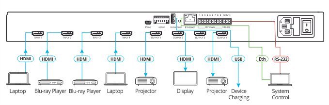 4x4 4K60 4:2:0 HDMI Matrix Switcher