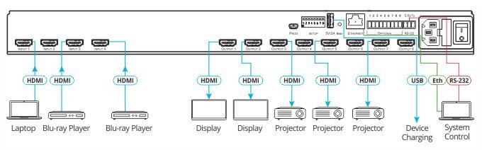 KRAMER - VS-48UHD 4x8 4K60 4:2:0 Matrix Switcher