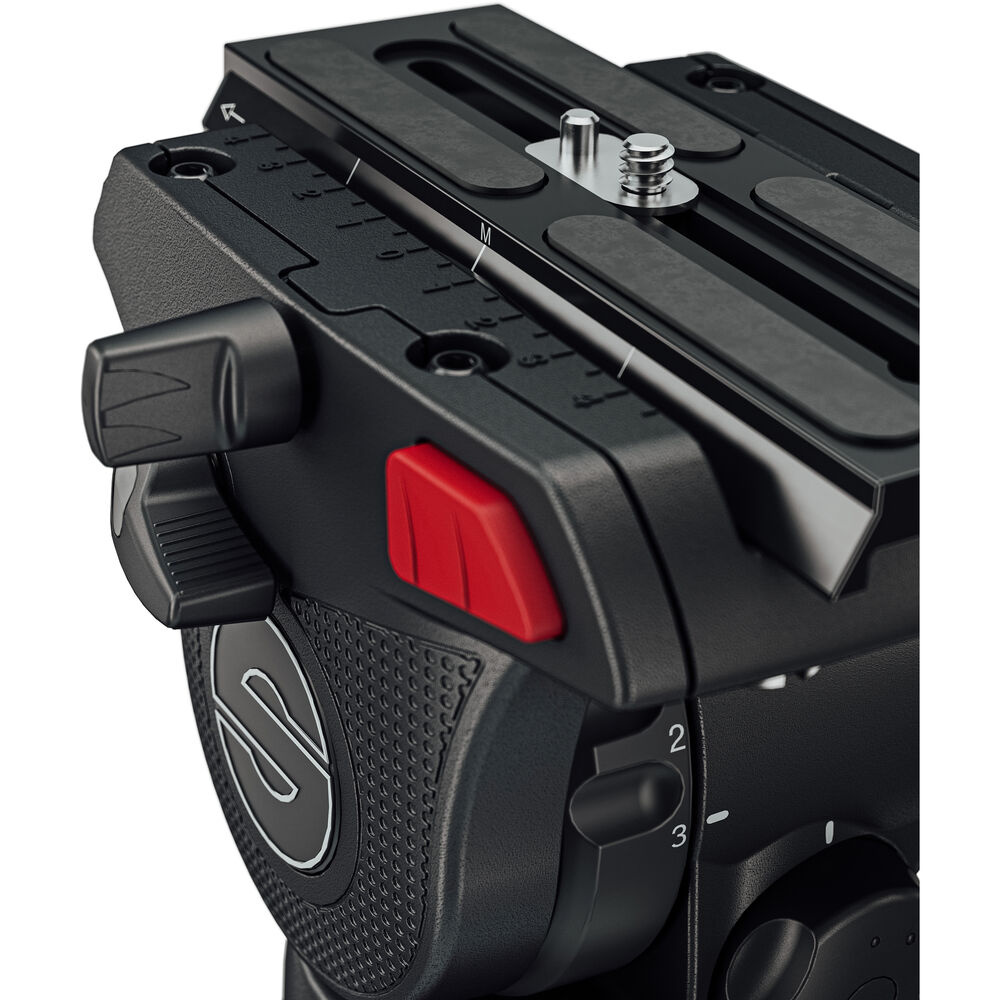 With Ace you have stability and smoothness with every shot. It simplifies your setup with camera plate markings, step-by-step counterbalance, and quick pan and tilt adjustments. Ace M supports cameras weighing up to 4kg, with five steps of balance to quickly adjust your load. The balance plate has a sliding range of 104mm to ensure that you can place cameras with accessories centrally on the head. Sachtler resistance ensures smooth movement at any temperature. Weighing just 4.5kg, this Ace M system is light in weight but not in features, so go further, climb higher and capture that winning shot in the heat of battle.