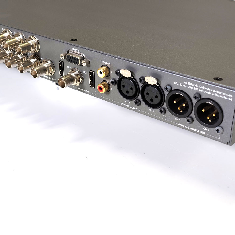The switcher is 1 RU high and has built-in rackmount ears for mounting in a production cabinet or post-production facility,
