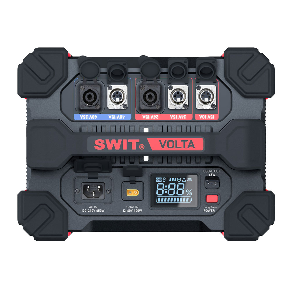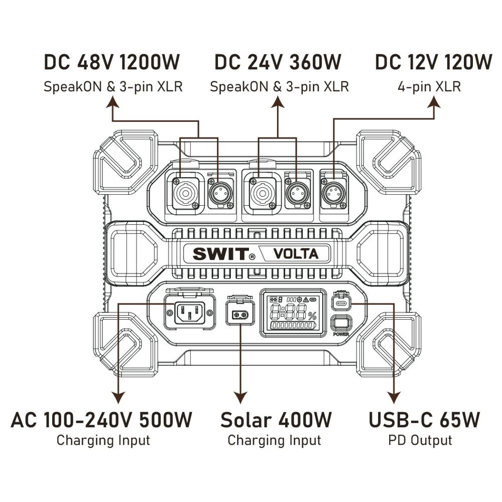 The SWIT VOLTA-DC1600 is a modular battery system with 1600 Wh per unit, designed for professional film and broadcast productions where a long-lasting and stable power supply is essential. Thanks to its stackable design, up to eight units can be connected together for a total capacity of 12.8 kWh, providing maximum flexibility on location or in the studio.