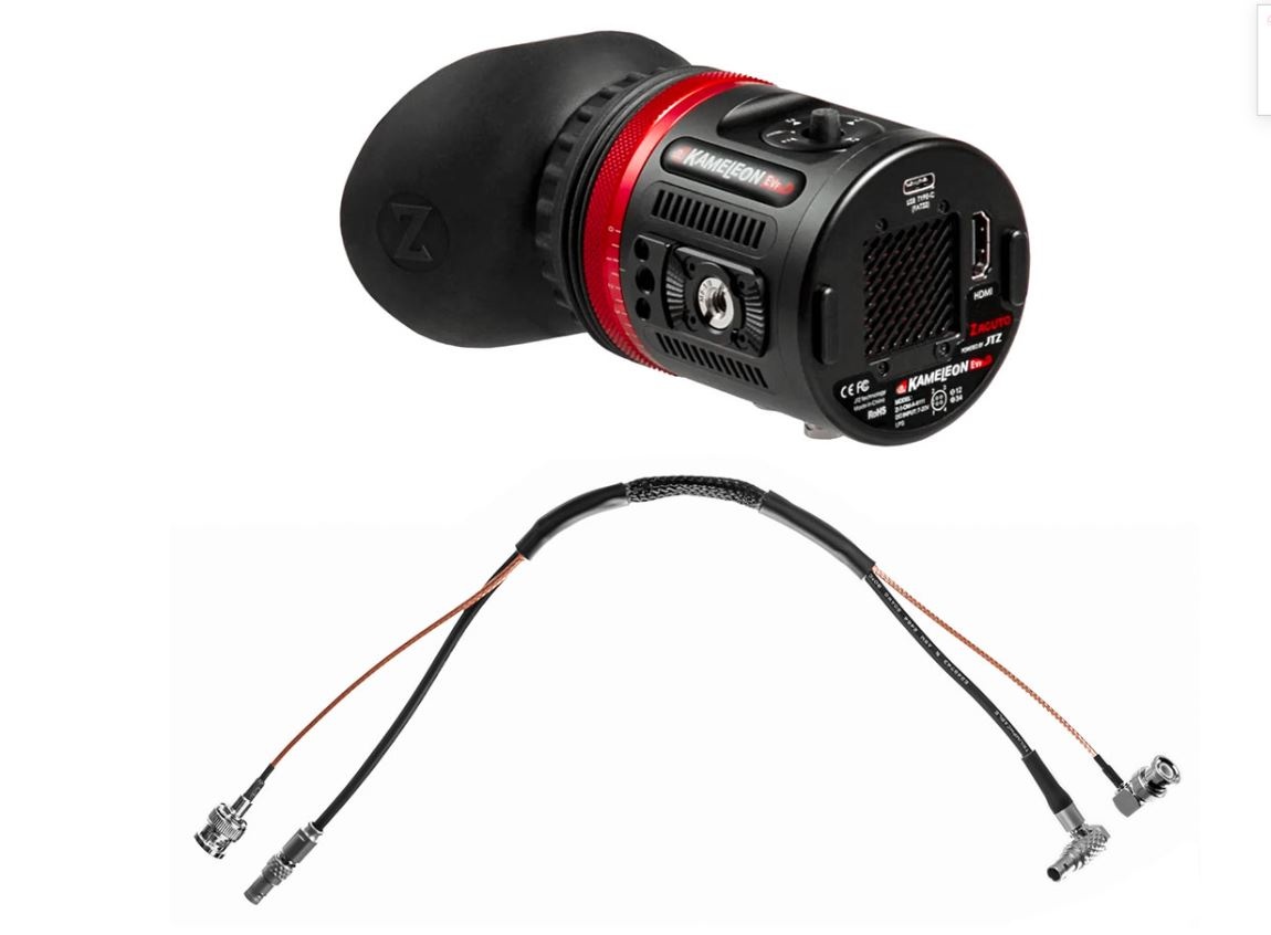 The Kameleon PRO EVF for RED Raptor XL includes the Kameleon EVF Pro with 12” combined 2 pin LEMO to 4 pin LEMO and SDI cable to easily power your EVF.